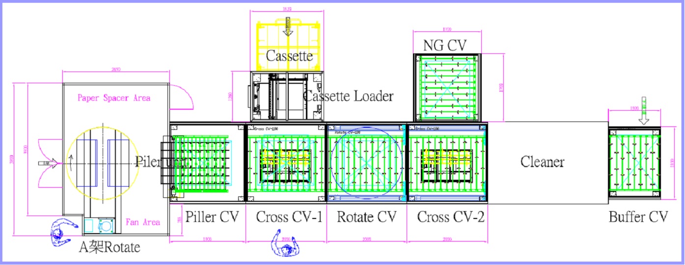 此製程設備是將A型架或Cassette的 Glass